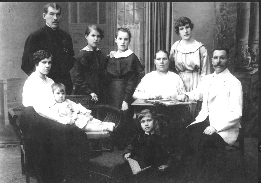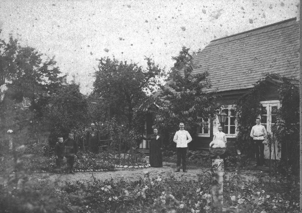Выезджаем… Отец стали на колени помолилисе… Выехали на Беловежу. Ехали до самых Клинцов – за Минском. Заежджаем там, отец там роспределял квартиры. В Клинцах отец выбирает квартиру. Мы там были три года. Там Катя, полпаненка (14 г.) кажэ – Мить, Мить, ходи сюда смотри какий полячок. Тоды не было мовы о революцiи. Был батюшка царь. Чловеку, русскiе люди очень религиозны – хозяйка и хозяин. Там мы держали восемь- десять курок. И то, в 1917 г. самая главная революция была