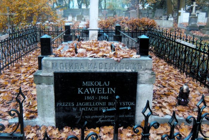 Во время очередного футбольного матча молодые болельщики собрали в шапки более шести тысяч злотых. Потом подключились специалисты по обработке камня и по металлопластике – тоже болельщики местной команды. Они за свой счет восстановили 24 метра ржавеющего ограждения, рассыпающиеся бетонные столбы заменили гранитными, очистили надгробную плиту и крест. Благодаря этому, теперь каждый легко прочитает надпись: „Mогила Кавелиных”. С разрешения кладбищенских властей тут же положили еще одну плиту: „Николай Кавелин 1865-1944, председатель „Ягеллонии” (Белосток) в 1932-1935 гг. Реставрацию осуществили болельщики „Ягеллонии”.