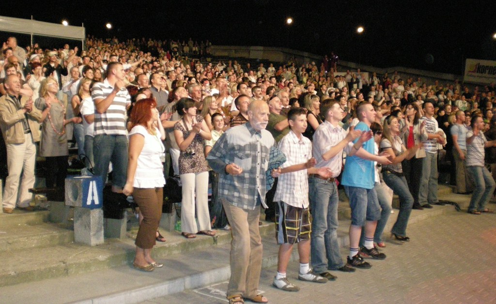 Балконы близлежащих панельных высоток были усыпаны зрителями-безбилетниками. Наверное, им мешал шум и блеск сценичных ламп, но, по их словам, они готовы были это терпеть ещё не один день, ведь они этого ждали почти 20 лет!
